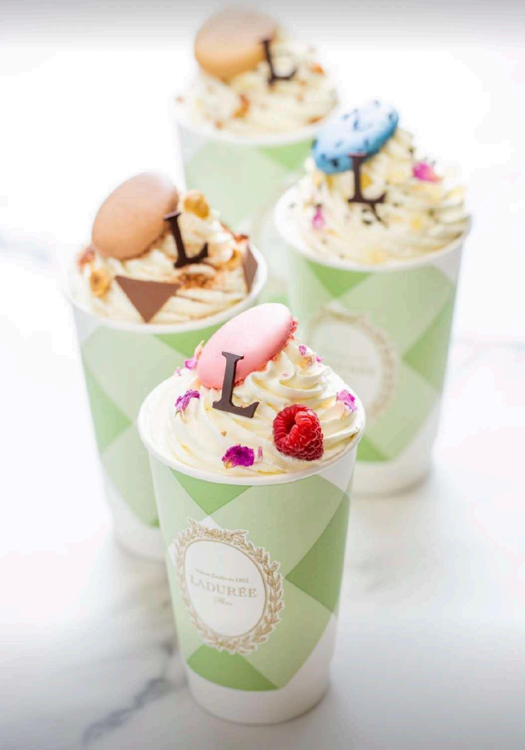 Guests will be treated to a range of exceptional, baristamade coffee options as well as Ladurée's delicious, signature colourful latte creations, whose recipes are inspired by Ladurée's iconic pastries - each topped with a miniature macaron - all served in the Maison's trendsetting green gingham cups and available to stay or 'to-go.