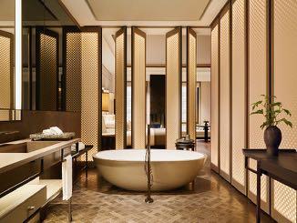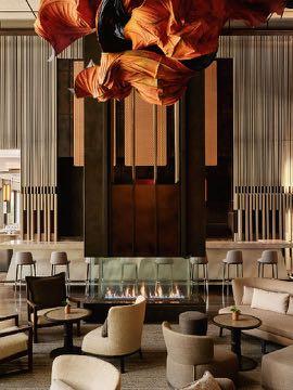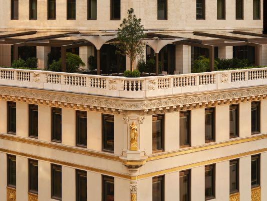 Situated in the historic Crown Building, Aman New York is a temple of design, created in partnership with long-time Aman collaborator Jean-Michel Gathy of Denniston Architects. The arrival experience sets the tone for an aesthetic journey which complements the powerful statement of the building’s gilded splendour. The doubleheight atrium with multilayers of textured ceiling and wall panels in muted tones hints at the brand’s Asian heritage while celebrating the unceasing heartbeat of Manhattan.