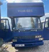 7.5T Leyland Daf Horsebox 1997 65k miles from New. Main battery isolator, new shock absorbers, new brakes, pads and discs, new track rod ends & drag links, ramp has been rebuilt, new front tyres, two new batteries, alley flooring with rubber matting, telescopic partitions. Solid lorry with no rot. Tilt cab, water tank, 4 ring gas hob, 3 way fridge with ice box, sink, large comfortable mattress in luton, seating, cupboards, wardrobe, two outside lockers, blackout blinds, electric hook up, 3 x leisure battery. Don’t be put off by age. I have owned this lorry for approx 8 years. We have stayed away at competitions all over the country. Everything that ever needed doing to it, has been done. MoT until 31 Jan 2024 – no advisories. Only selling as I want a 3.5T now as I only take one horse out. Offers around £7,000 or swap for 3.5T preferably van style. (Swadlincote). Tel: 07720 560566