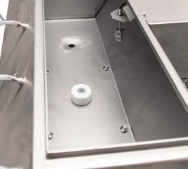 Bacino di raccolta rinforzato, realizzato in acciaio smaltato con vernici epossidiche.