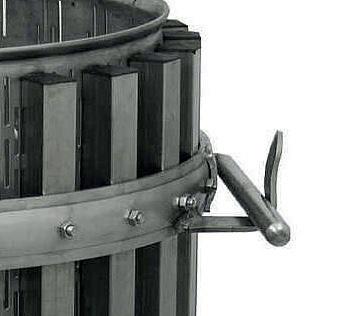 Il torchio a leva è uno strumento ideato per l’estrazione del mosto dalle vinacce. Progettato e realizzato da Polsinelli con materiali di prima qualità risponde alle esigenze produttive di aziende e appassionati di enologia. Si compone di un movimento a cricco ed una gabbia inox poggiata su un bacino e sorretta da un resistente treppiedi in metallo.
