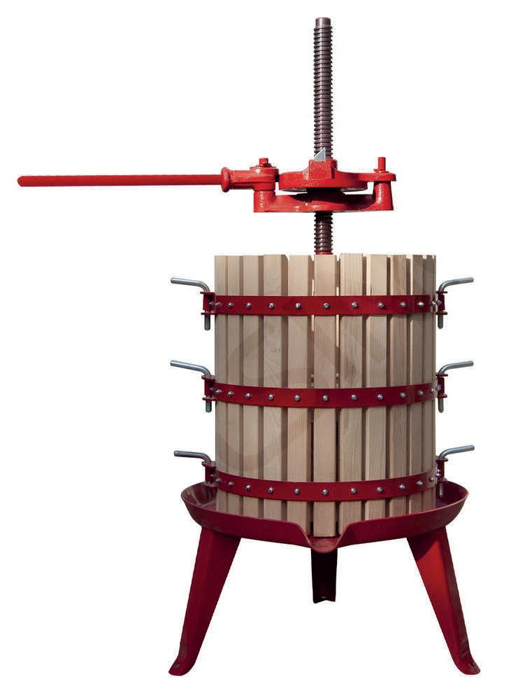 Il torchio a leva è uno strumento ideato per l’estrazione del mosto dalle vinacce. Progettato e realizzato da Polsinelli con materiali di prima qualità risponde alle esigenze produttive di aziende e appassionati di enologia. Si compone di un movimento a cricco ed una gabbia in legno poggiata su un bacino e sorretta da un resistente treppiedi in metallo.