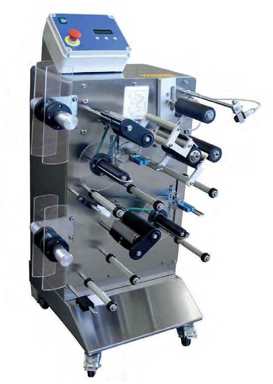 The ETI 20 is a semi-automatic adhesive labelling machine on wheels, designed to apply labels and back labels in a single work cycle thanks to its two independent reels.