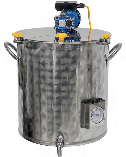 The motorized mashing pot, made of high-thickness 18/10 stainless steel (AISI 304) with exceptional durability, is essential for producing high-quality craft beers. The professional analog thermometer ensures precise temperature monitoring throughout the process. The high thickness bottom is designed to maintain the correct temperatures during mashing and prevent caramelization, even without insulation. The reinforced lid is equipped with stainless steel hooks. Included: Gear motor, paddles, tap and thermometer.