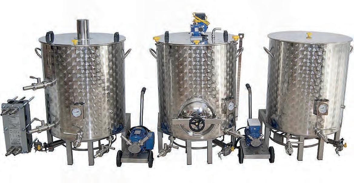 Simple and versatile, the Easy 50 and Easy 100 gravity systems are made of AISI 304 stainless steel and powered by direct flame. They include a sparge pot, a motorized mash tun with a halo filter and fly sparge, a boil pot, a fermenter, an electric pump, hoses, level indicator and a heat exchanger. These systems meet the needs of homebrewers and are also used in microbreweries as pilot systems.