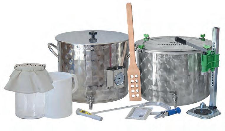 Fabriqué en acier inoxydable, ce kit est un produit de haute qualité, idéal pour la préparation, la mesure et le nettoyage de tous les outils nécessaires à la fabrication du kombucha. Ce kit de démarrage vous permet de préparer chez vous votre kombucha préféré! Le kit comprend: une cuve en inox équipée d’un robinet inox et d’un thermomètre professionnel analogique inox avec protection, un fermenteur en inox avec robinet en acier inox (haut ou bas selon le modèle), un couvercle en inox à haute épaisseur avec couvercle en tissu respirant et joint en silicone alimentaire, 1 spatule en bois, 1 pH-mètre Penna 6020, 1 transvaseur automatique, 1 réfractomètre à 3 échelles ATC, 1 pot de 5 L avec coton respirant pour conserver le Scoby et le starter pour le prochain lot, 1 boucheuse ECO pour bouchons couronne 26/29,1 paquet de 100 g de métabisulfite de potassium pour la désinfection, 1 pichet gradué de 5 L, 0,5 mètre de tuyau de cristal non toxique 12x16.