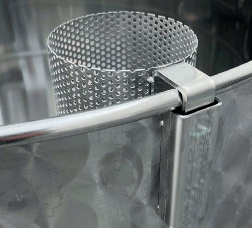 Das Filtertuch ermöglicht den Austritt der Flüssigkeit, ohne dass die Löcher des gelochten Edelstahlkorbs verstopfen.