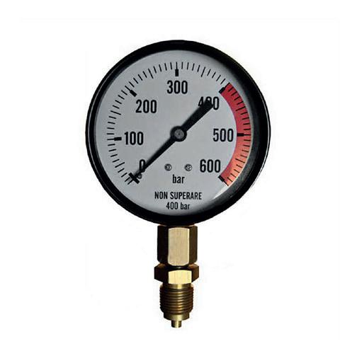 Manometer. Unverzichtbares Zubehör zur Kontrolle des Drucks des Presszylinders während des Pressvorgangs.