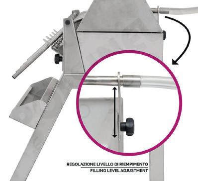 Durch die Verwendung von Glykol bei einer Temperatur von -25 °C/-28 °C ermöglicht der AISI 304 Edelstahl FlaschenhalsGefrierschrank mit 40 Plätzen das Einfrieren von Flaschenhälsen während der Degorgationsphase von Spumante und Champagne um alle in der Kappe abgelagerten Verunreinigungen zu entfernen und das Endprodukt vollkommen klar zu machen. Der Kompressor startet automatisch entsprechend der Temperatur der Hydroglykolmischung, die vom elektronischen Thermoregler über eine im Gemischsammelbehälter eingesetzte Sonde erfasst wird, und die Zwangsumwälzung des Glykols erfolgt über 2 Rührwerke im Inneren der Kühleinheit. Der Gas- und Glykolkreislauf Freon R452A ist mit elektrischen und mechanischen Sicherheitsvorrichtungen ausgestattet. Der Flaschenhals-Gefrierschrank mit 40 Positionen und 70-Liter Behälter ist mit 4 Lenkrollen für eine einfache Bewegung ausgestattet.