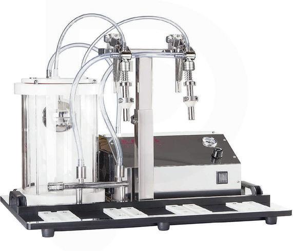 Mit der pneumatischen Verschließmaschine lassen sich Kapseln in zwei einfachen Schritten aufbringen. Er wird mit Druckluft betrieben und kann Flaschen von 0,75 cl bis zu 1,5 l mit bis zu 150 mm langen Kapseln verschließen, bei einer Stundenproduktion von bis zu 500 Flaschen.