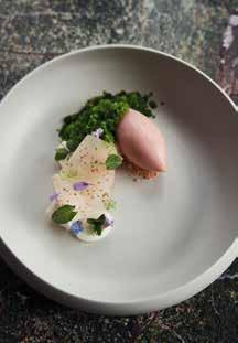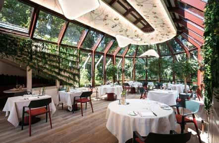sauce crémeuse et d’huile de sapin, « un arbre dont le goût change à chaque saison ». En hiver, sa force ombrageuse va comme un gant à une création à l’harmonie épurée, évoquant, dans son esprit, certaines partitions d’Arvo Pärt, tandis qu’elle rappelle, sur le plan esthétique, l’action painting – quelque part entre Jackson Pollock et Sam Francis –par ses ondoiements satinés de roses et de marrons. Mais les mots sont d’imparfaits ambassadeurs pour décrire un goût incomparable. Il en va de même d’une composition joliment circulaire magnifiant le caviar suisse 2 aux réminiscences de noisette, délicatement installé sur un lit de champignons fermentés. Voilà alliance entrant en résonance avec une bouteille de pinot noir d’une infinie douceur du voisin Weingut Sprecher von Bernegg. Un soleil d’hiver rougeoyant à l’irradiante vigueur végétale, où la betterave rouge rencontre le cassis et le pin demeure également dans notre mémoire. Car c’est bien de cela qu’il s’agit dans un établissement dont le nom sonne comme un manifeste : « Nous apportons nos souvenirs dans les plats. Ceux qui s’assoient à table ont les leurs. Nous en forgeons ensemble de nouveaux, le temps d’une soirée. » Et ils sont durables.