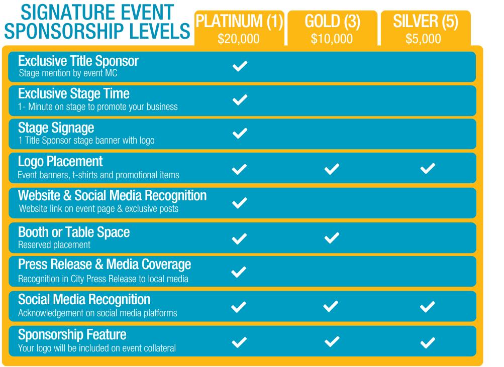 • SPECIAL EVENTS | Sponsorship Range: $3,000-$10,000 (1,000+ Participants) Mid-sized events that offer a vibrant mix of entertainment, cultural enrichment, and family fun.