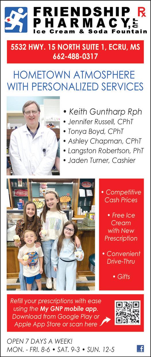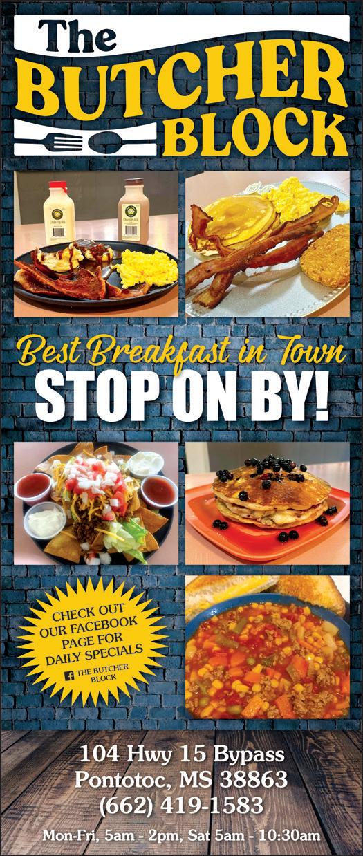 Southern cuisine at its best is spread on the tables across Pontotoc when you are ready to whet your appetite. Don’t be shy about pulling up to the table and setting a spell while you chat with family and friends over a good meal. You will find great places to eat in little out of the way places from Ecru to Algoma where you can get that sausage and biscuit in the morning or a full seafood meal at night. In the heart of the county you can have a good ole’ smoked BBQ, chicken, a juicy steak and baked potato, oriental, or a number of other kinds of meals to suit your taste. We also specialize in the snacking kind of food, from cookies to sno cones, we aim to please, so look for your favorite and enjoy your meal. We will keep the stove warm for you.