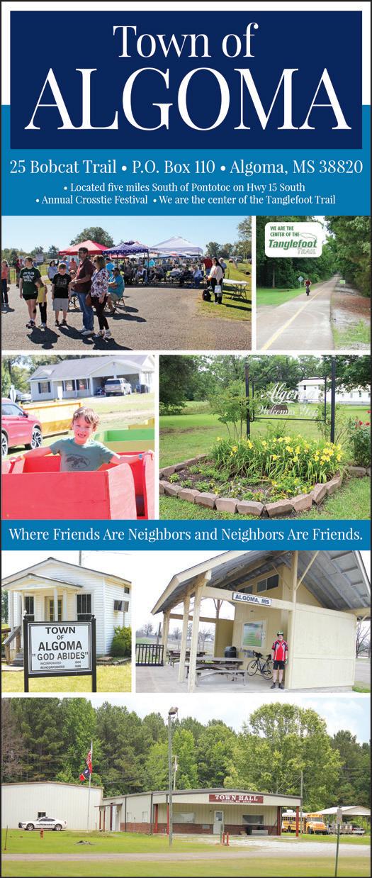 Come play with us! Whether you want to spend a lovely afternoon soaking in the sunshine at the play area near the Tanglefoot Trailhead in Pontotoc or find your favorite fishing hole to enjoy the water, we have a place for you. Pontotoc also boasts places you can enjoy shopping, eating and enjoying chasing your history at the museum or the library. Each community has a unique atmosphere that draws you in to the quaintness and the friendliness of our residents. So come stay awhile and look for all those exciting things you can do in this little book!