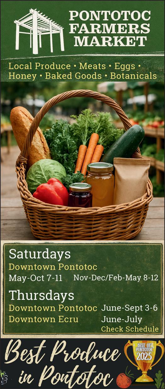 What could be more luscious than biting into a peach that was picked just yesterday? Or picking up a bag of purple hull peas to shell that was picked that morning? This is what Pontotoc Farmer’s Market offers the folks of Pontotoc County. The market has also expanded into Ecru, with people enjoying shopping for fresh produce once a week from local farmers. Now you not only get good vegetables to eat, but also neat plants to grow in your landscape or your home. And there are also chickens to raise, fresh beef to eat… just go check it all out. Whenever the vendors pull in and show up, folks in the community gather and enjoy the day chatting and shopping in the open air market that provides an atmosphere of smiles and joy that second to none in the state.