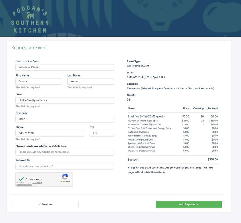Enter your contact information and complete the captcha Add any special notes or requests in the “Additional Information” box Then, click the green “Add Payment” button