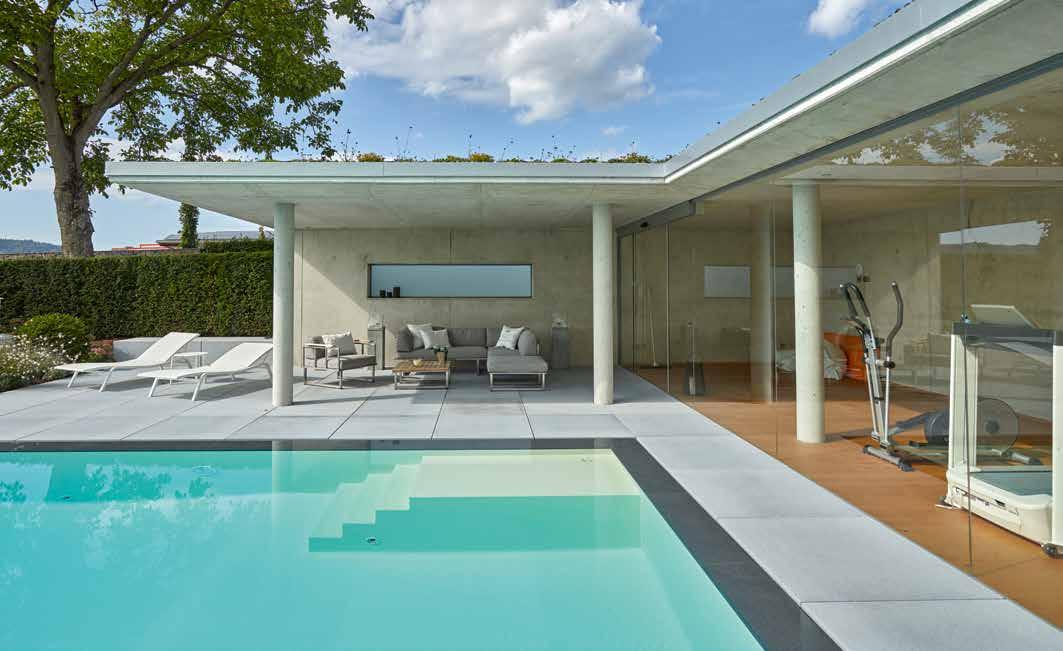 Außenpool Die Bauherren nutzten die vielfältigen Konfigurationsmöglichkeiten eines besonderen Beckensystems. Heraus kam ein Pool mit außergewöhnlichem Design 6