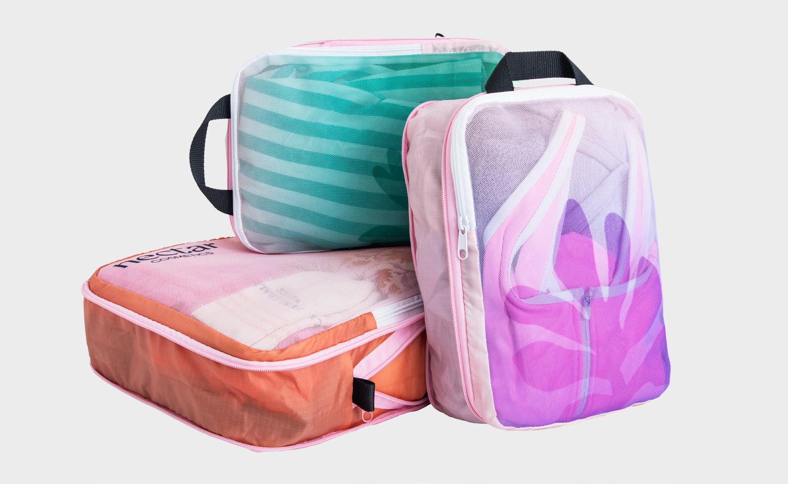 Sublimated mesh panels offer breathability, visibility, and full-color customization that sets this item apart. Available as singles or sets (one Large, and two Small Compression Packing Cubes) with ten stock zipper and webbing colors to mix, match, and make your brand pop.
