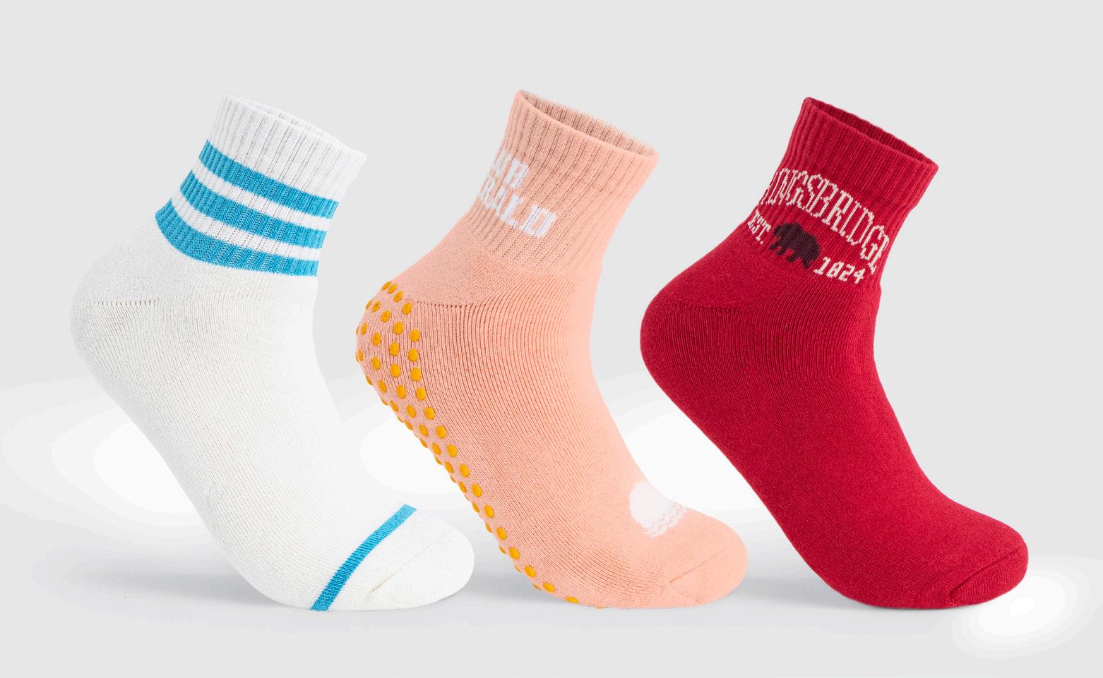 Compression Socks with 15–20mmHg support to boost circulation and reduce fatigue. All-day comfort, breathable durability, and PMS-matched knit designs are available in four Pantone-matched colors for easy standout customization.