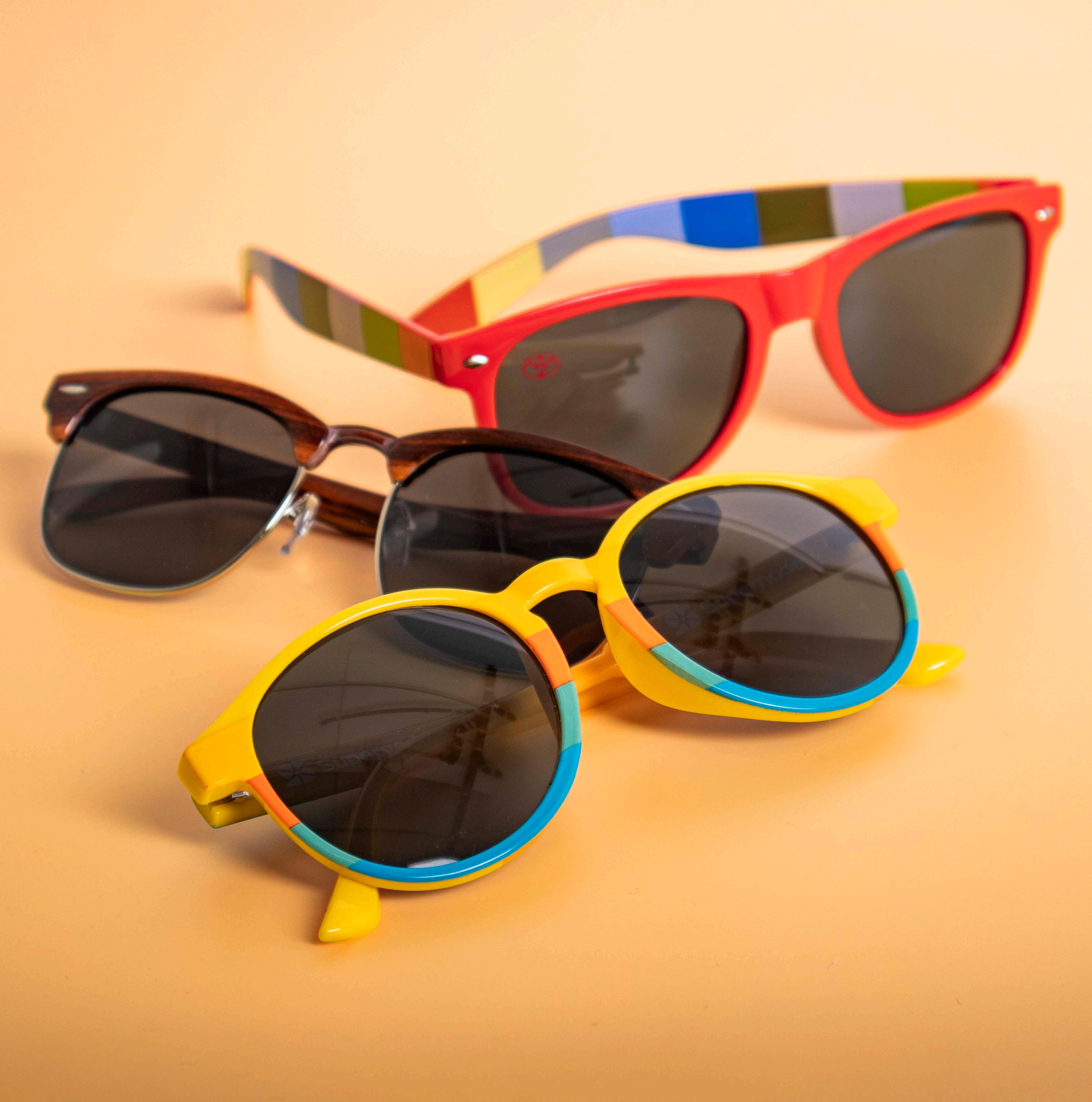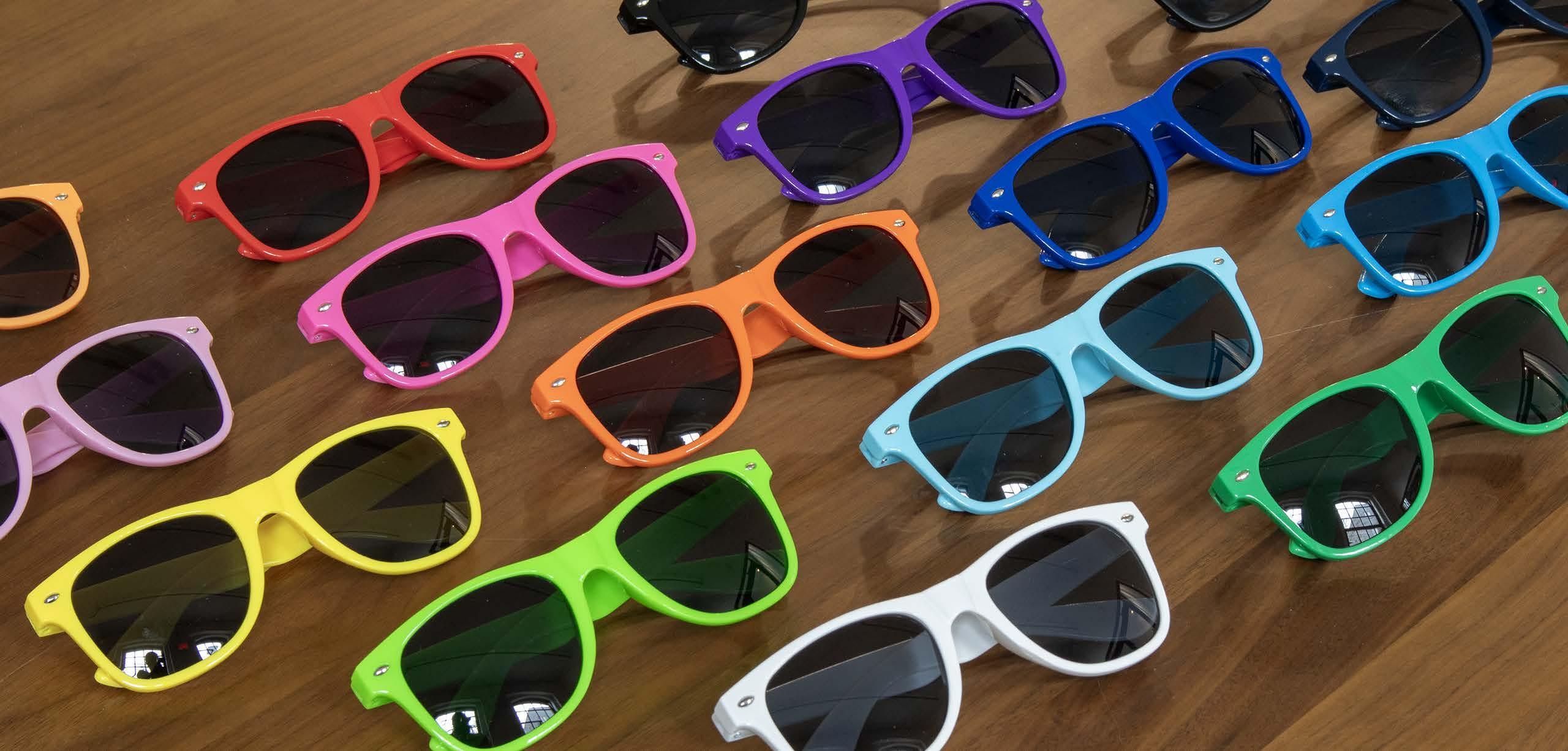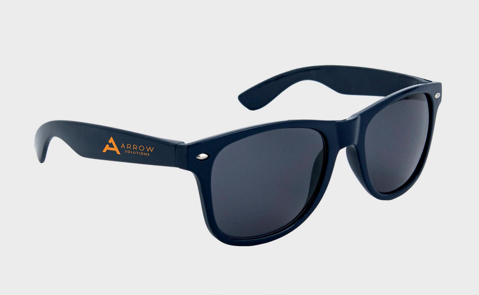 Each pair boasts a glossy finish with a choice of 16 stock color frame options and a one spot color imprint on both temples for bold, high-visibility branding. Each pair has UV400 lenses and durable plastic hinges to support repeat wear.