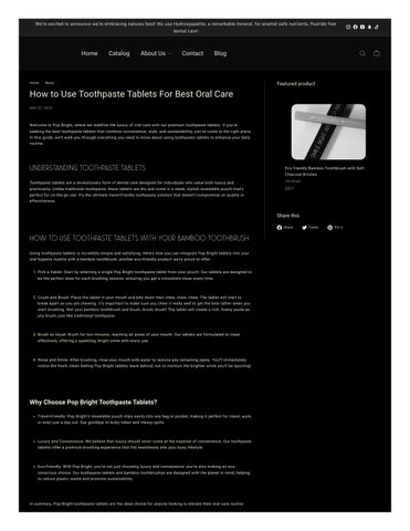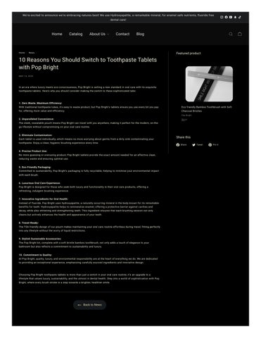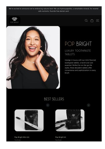 BestSellers PopBrightMini-kit $900 PopBrightkit $1400 Home Catalog AboutUs Contact Blog We'reexcitedtoannouncewe'reembracingnaturesbest!WeuseHydroxyapatite,aremarkablemineral,forenamelsafenutrients,fluoridefreedental care!