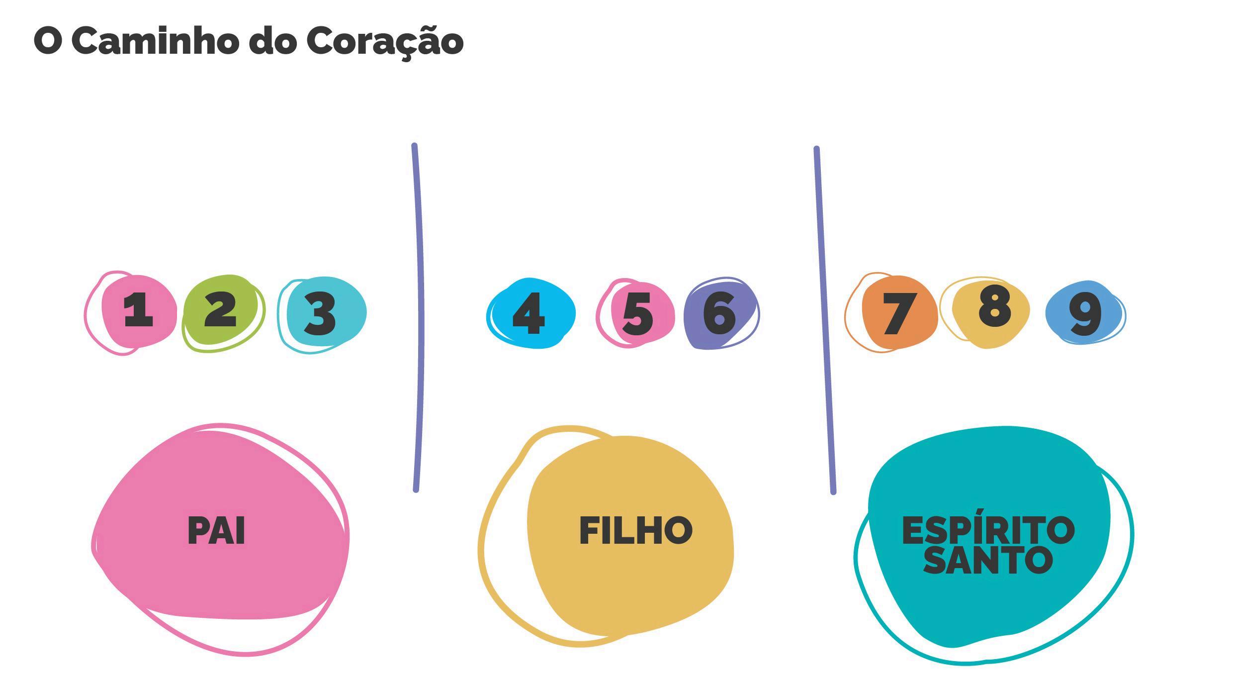 A primeira tríade convida-nos a centrar-nos no Amor, que é a própria essência de Deus. Em termos gerais, pode associar-se ao PAI, que nos fala diretamente ao coração numa linguagem que podemos compreender, de modo concreto e experiencial, na nossa própria história pessoal (“o meu coração”).