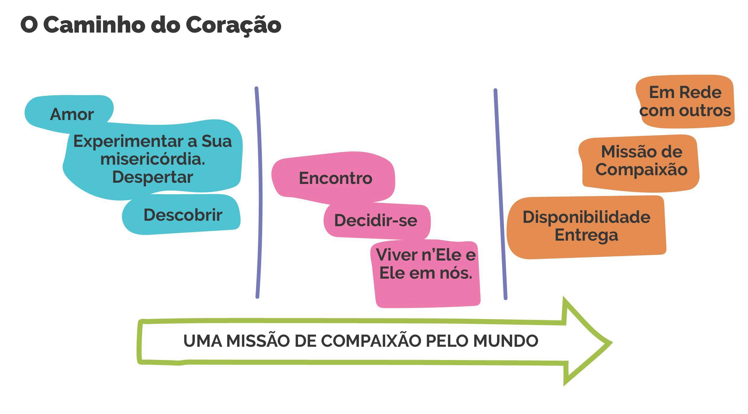 O Caminho do Coração é um processo mistagógico e catequético que estrutura uma experiência espiritual. É um caminho de encontro com Cristo que convida a uma amizade pessoal e profunda com Ele, para colaborar na Sua missão de compaixão pelo mundo Ajuda a sintonizar o nosso coração com o Coração de Cristo, a cultivar sentimentos e atitudes mais parecidos com os d'Ele, e, a partir desse encontro transformador, entrar na Sua missão de compaixão.