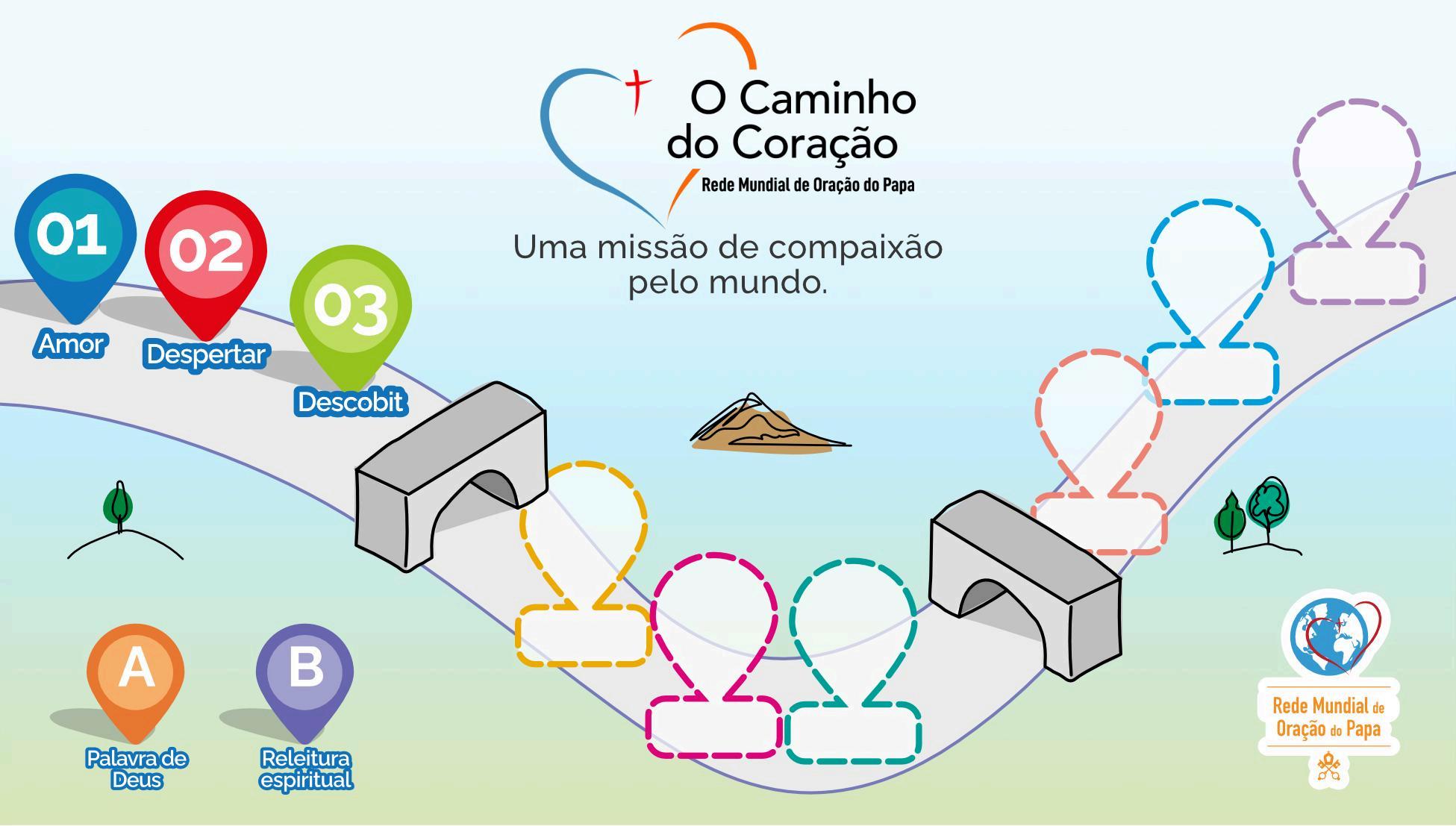 O Caminho do Coração ajuda o caminhante a perceber os desafios do mundo com os olhos de Jesus Cristo, para mobilizar-se todos os meses, em docilidade ao Espírito Santo, através da oração e do serviço, pelos desafios da humanidade e pela missão da Igreja