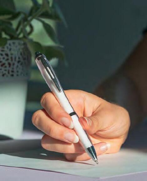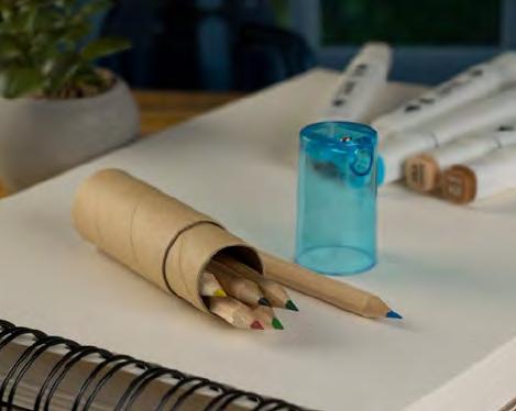 Blauschreibender Kugelschreiber aus recyceltem Papier, die farbigen Applikationen sind aus PLA Kunststoff (Mais) gefertigt. Ihre Werbung wird rechts vom Clip gedruckt.