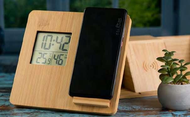Der ultimative Allrounder: Unser stylischer Bluetooth Lautsprecher kombiniert modernste Technik mit praktischem Design. Ausgestattet mit einer Wireless Charging Funktion, ermöglicht er ein unkompliziertes Aufladen Ihres Smartphones. Die integrierte Digitalanzeige zeigt Ihnen stets die Uhrzeit und andere wichtige Informationen an. Der leistungsstarke 2.000 mAh Akku sorgt für stundenlangen Musikgenuss. Neben dem herausragenden Klang bietet dieser Lautsprecher auch ein integriertes Radio, sodass Sie jederzeit Ihre Lieblingssender hören können. Ein Smartphonehalter sorgt dafür, dass Ihr Handy immer sicher und griffbereit ist. Dank der Alarmfunktion sind Sie immer pünktlich und die dimmbare Lampe in drei Stufen schafft die perfekte Atmosphäre für jede Gelegenheit.Verleihen Sie diesem multifunktionalen Gerät eine persönliche Note: Ihre Werbung wird direkt auf dem Lautsprecher angebracht und sorgt für maximale Sichtbarkeit. Dieser Bluetooth Lautsprecher ist nicht nur ein technisches Highlight, sondern auch ein stilvolles Accessoire für Ihr Zuhause oder Büro.