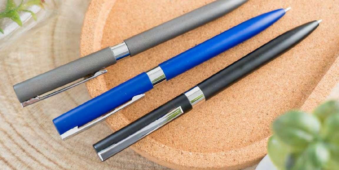Exklusives Schreibset, bestehend aus einem eleganten Kugelschreiber und einem stilvollen Rollerball. Beide Schreibgeräte sind aus recyceltem Edelstahl gefertigt und mit einer angenehmen Rubber Oberfläche versehen, die für eine komfortable Handhabung sorgt. Die edlen Applikationen aus Gun-Metal verleihen dem Set eine moderne und raffinierte Optik.Das gravierte MoLu Logo auf beiden Stiften betont die hochwertige Verarbeitung und Exklusivität dieses Sets. Ihre Werbung wird dezent und doch wirkungsvoll rechts vom Clip auf beiden Schreibgeräten angebracht, wodurch Ihre Marke stets präsent ist.Dieses Schreibset ist nicht nur ein praktisches Utensil für den Alltag, sondern auch ein stilvolles Accessoire, das Professionalität und Nachhaltigkeit vereint. Ideal als Geschenk oder Werbeartikel, hinterlässt es garantiert einen bleibenden Eindruck.