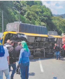 En la vía que conecta a la capital con el Norte del país, quedaron también los restos de las bebidas gaseosas y cajas que transportaba el camión. Según reportes preliminares, el camión se desplazaba a gran velocidad y tuvo un problema de frenos.
