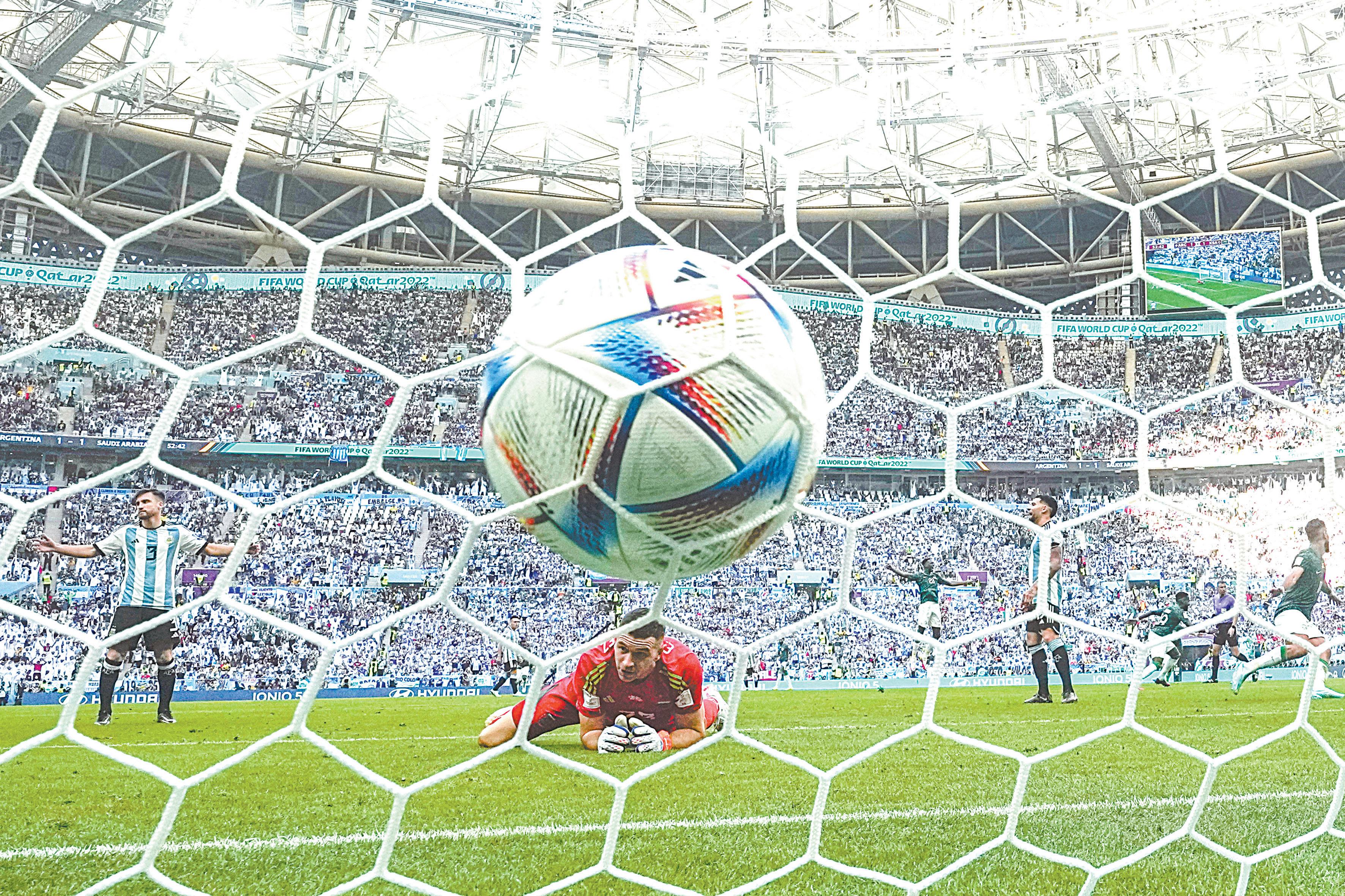 El portero árabe y su zaga se multiplicaron para evitar que el balón entrara. La Albiceleste per dió liderazgo y por sexta ocasión en un Mundial cayó en su debut.