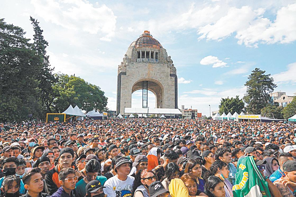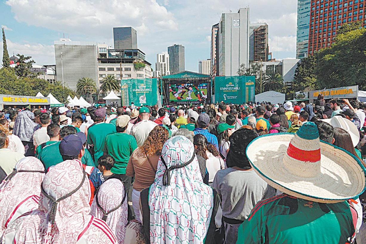 El monumento a la Revo lución, la Plaza Principal de Mérida, entre otros escenarios, se convir tieron en enormes salas para que los espectadores pudieran ver a México en pantallas gigantes. La ilu sión estaba intacta porque parecía que la Selección podría dar la campana da que hiciera olvidar el mal momento que vive el Tricolor desde ante de que llegara a la Copa del Mundo. Las expec tativas nunca estuvieron en altitud, pero la pasión y el amor que se le tiene al combinado Nacional siempre hace soñar a los millones de fanáticos,