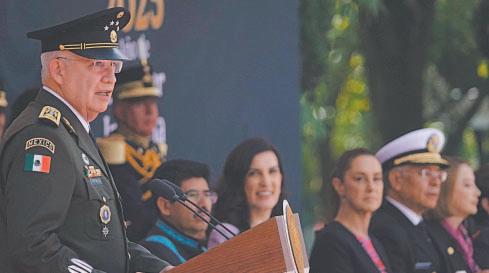 El titular de la Defensa aseguró que los principios de unidad y trabajo conjunto mantienen sólidas a las Fuerzas Armadas del país, a pesar de los riesgos y amenazas. En ese marco, también reconoció la labor de la Marina, soldados, pilotos y guardias. Frente a la presidenta Claudia Sheinbaum Pardo, el General Secre-