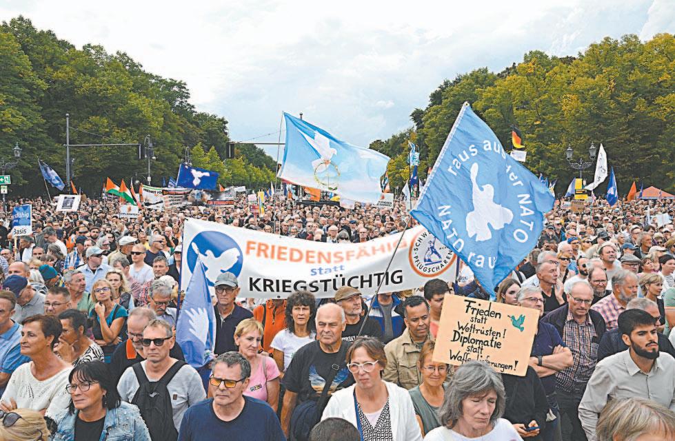 Según la Alianza Sahra Wagenknecht , en la convocatoria participaron 20 mil personas; mientras la Policía calculó 12 mil . (AFP)