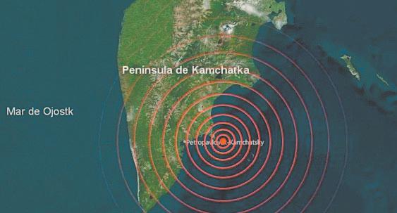 tes jamás registrados golpeó en julio pasado frente a la Península de Kamchatka, y desencadenó tsunamis de hasta cuatro metros de altura en todo el Pacífico y evacuaciones desde Hawái hasta Japón. Un temblor de magnitud 8.8 fue el más grande en la zona desde el 2011, cuando uno de 9.1 frente a Japón causó un tsunami que mató a más de 15 mil personas. (Agencias)