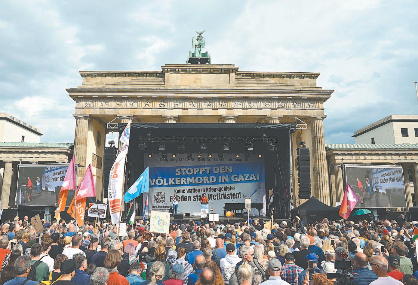 BERLÍN.- Miles de personas se congregaron este sábado frente a la puerta de Brandeburgo de Berlín, la capital alemana, a instancias de una formación de izquierda radical, para exigir el “fin del genocidio” en Gaza y del suministro de armas a Ucrania.
