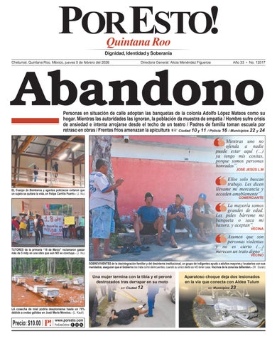 Hallan cadáver en Leona Vicario y ejecuan a un hombre en bar de Cancún / Pese a ola criminal, titular de la FGE desestima percepción de violencia, de casi 80% / Aun con alta incidencia de homicidios, Mara Lezama mantiene intacta su estrategia de seguridad / Sin acceso a la salud, 30 mil adultos mayores Policía 1 a 3 / El Estado 2 y 3