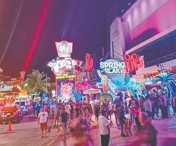 2. Zona Hotelera, la franja costera con hoteles altos, clubes nocturnos, tiendas y restaurantes. Cancún también es un destino popular entre estudiantes durante el período de vacaciones universitarias en la primavera.