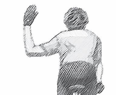 Brazo izquierdo doblado hacia arriba y palma extendida o brazo derecho en horizontal y palma extendida.