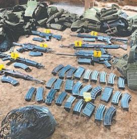 raron en el lugar 19 armas de fuego largas, un aditamento lanzagranadas, un tubo cañón, 11 granadas de humo (granadas que por cuestiones de seguridad fueron destruidas en las inmediaciones de dicho sitio), 77 cargadores y 22 mil 10 cartuchos de diferentes calibres, 23 fornituras, 19 chalecos tácticos y el inmueble. Lo asegurado fue puesto a disposición de la Fiscalía General de la República en Chiapas, para continuar con la integración de la carpeta de investigación en contra de quien o quienes resulten responsables en la comisión de portación de arma de fuego sin licencia, acopio de armas de fuego y posesión de cartuchos y cargadores de uso exclusivo de las Fuerzas Armadas. (Agencias)