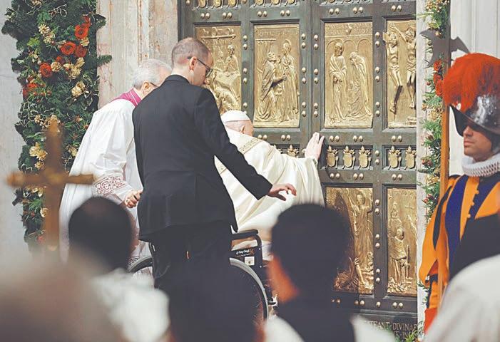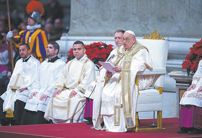 El Papa Francisco inició ayer el Año Santo 2025 de la Iglesia ca tólica, el gran peregrinaje inter nacional para el cual se esperan más de 30 millones de fieles de todo el mundo en Roma, bajo el signo del Jubileo . En un sermón centrado en la virtud de la esperanza, que tam bién es el tema del Año Santo Pontífice dijo que la esperanza “es una llamada a no demorarnos, a no ser retenidos por nuestros viejos hábitos, o a regodearnos en la mediocridad o la pereza”. “La esperanza nos llama... a dis gustarnos con las cosas que están mal y a encontrar el valor para cambiarlas”, dijo.