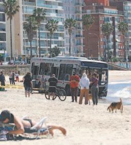 Según el reporte, un bus de la línea 121 de la empresa Cutcsa atravesó el muro de contención de la rambla (paseo costero) “colisionando contra la playa Pocitos terminando en la orilla del agua” del Río de la Plata.