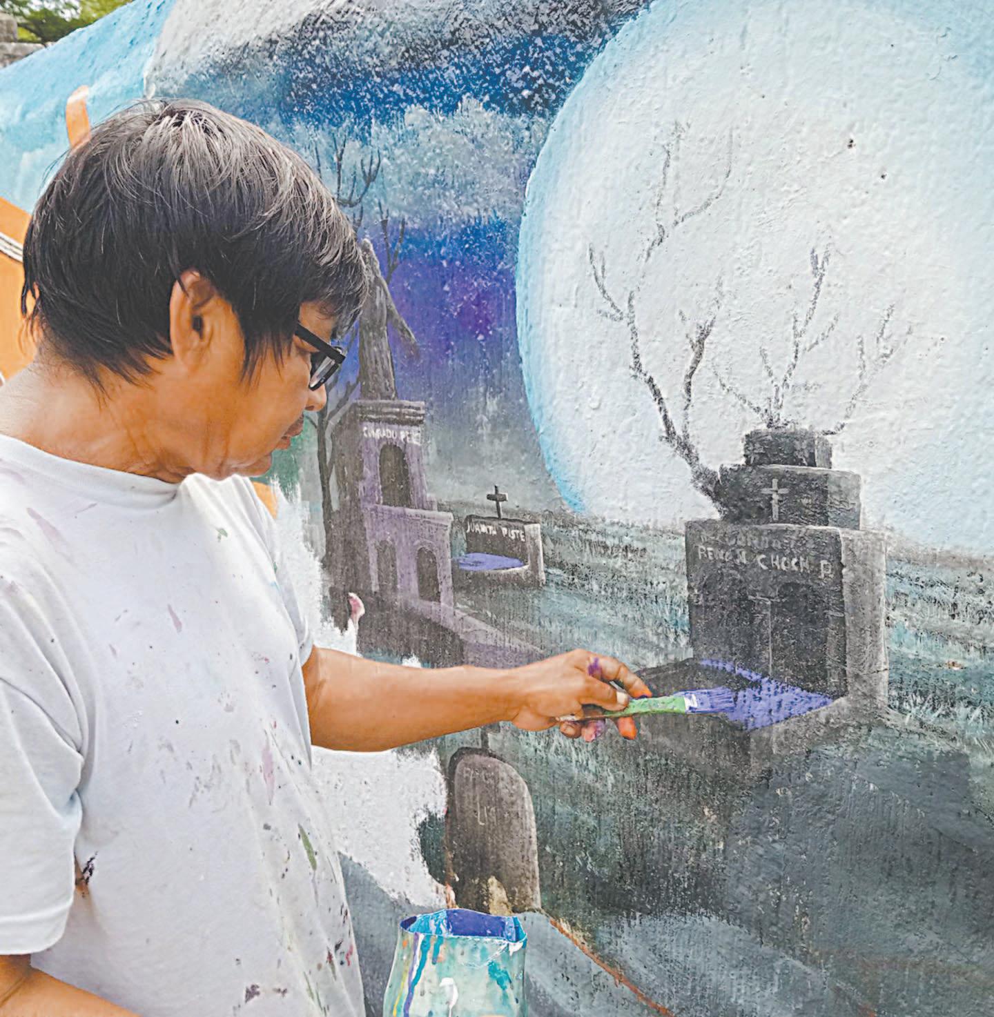 En vísperas del Día de Muertos, pintan mural en la barda del panteón de Hunucmá
