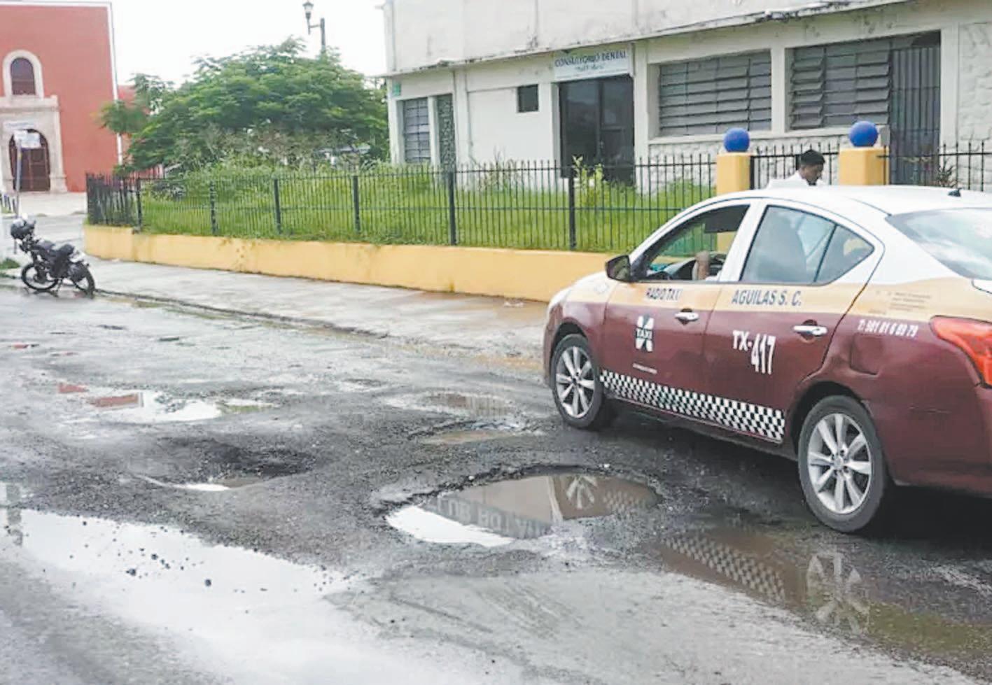 TAXISTAS locales afirman que los pocos trabajos de bacheo que las autoridades han realizado son con materiales de muy baja calidad, que se lavan con las lluvias y deja huecos más grandes. Una reparación vehicular promedio equivale a 40 días de salario mínimo.- (Especial)