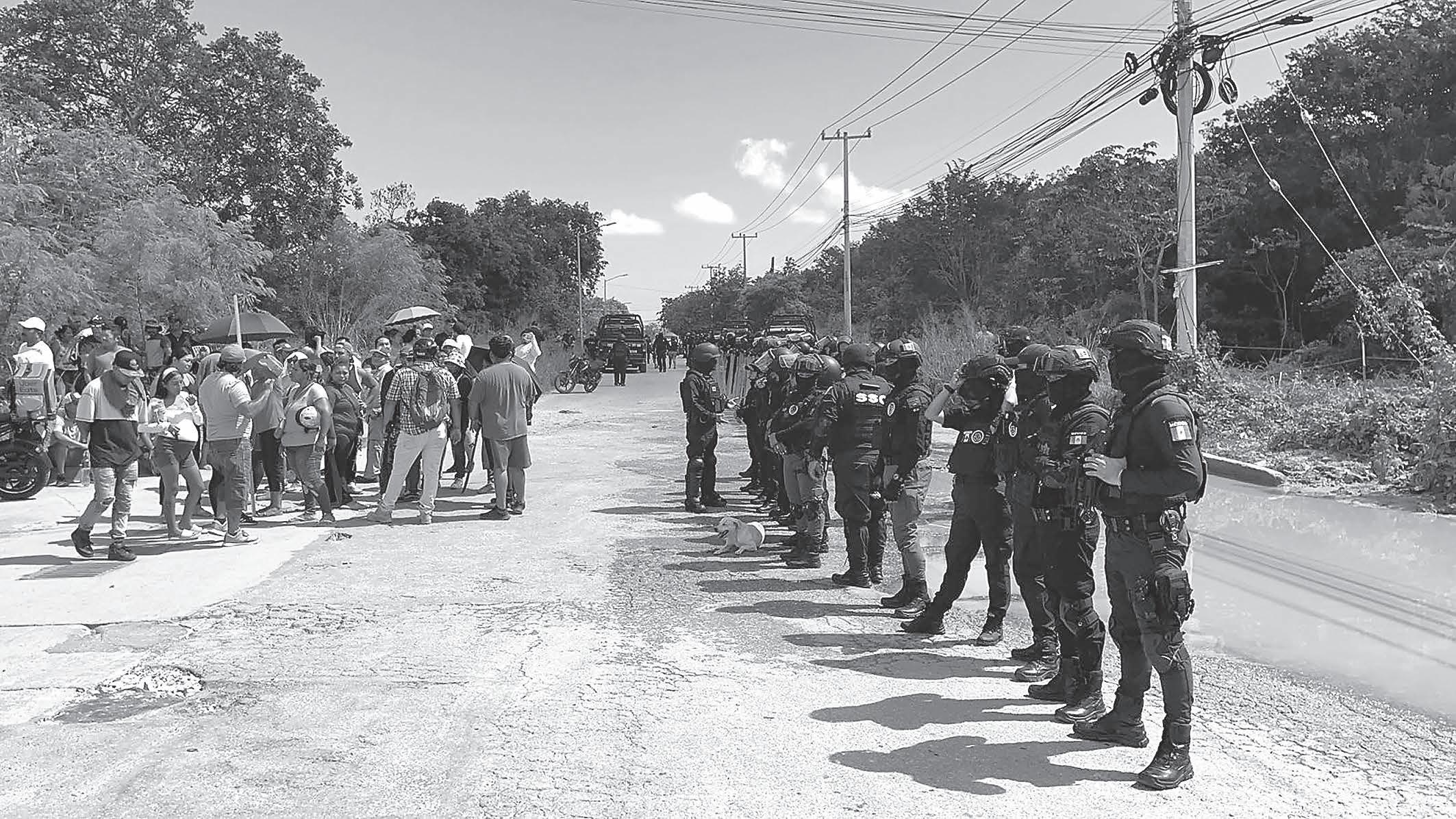 Autoridades municipales y estatales desplegaron un operativo con más de 200 elementos antimotines para desalojar a un grupo de personas que pretendía crear una nueva colonia irregular en Cancún / Ciudadanos dicen confiar más en la vigilancia vecinal que en la Policía, pues ésta tarda mucho en llegar y, cuando lo hace, no resuelve nada / Condenan represión contra familiares de desaparecidos en Chetumal; alistan demanda