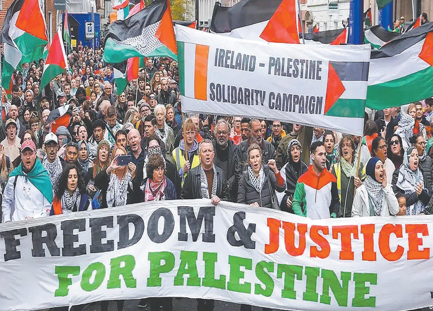 palestinos y libaneses”, mientras en Dublín, la concentración reiteró el respaldo a los habitantes de Gaza con gritos de “libertad y justicia para los palestinos”.