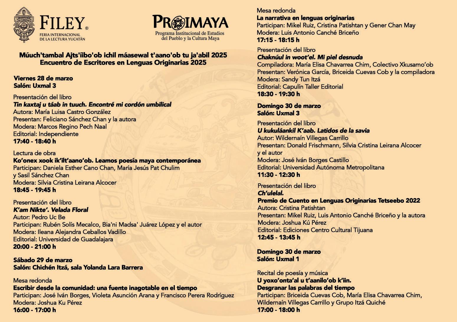 Le ken ts’o’ok u máan ka’ap’éel ja’ab k suut k beetik le súutukilo’ob je’ex tu ja’abil 2023 yéetel 2024, ti’ le ja’ab 2025 jach ku ki’imak kúunsik ek wóol tumen yaan u táakpajal jump’éel noj najil xook, letie’ Universidad Veracruzana, le’eti’obe’ ku aayik’alkúunsiko’ob le súutukil yéetel je’jela’asil súutukilo’ob ti’ ts’íib, u kansa’al, súutukil artíisticaso’ob, balts’amo’ob, yéetel xen yo’olal kaansaj, le je’elo’oba’ yaan u aayik’alkúunsiko’ob le muuk’ u ti’al k múulmeyaj ichil le je’ejela’asil najil xooko’ob tak yéetel kajnáalil máax u yéet yano’ob. Bey túuna’, le FILEY 2025, yaan u taasik to’on maanal ti’ jo’k’aalp’éelal je’ejela’asil súutukilo’ob: yan u ye’esal áanaltejo’ob, tsikbalo’ob, tsol tsikbalo’ob, periodismoo, súutukil yo’olal miatsil, múuchtaambalo’ob yéetel tsikbal, balts’amo’ob, súutukil cha’an, súutukil kaambalo’ob, yéetel xan yaan u taal u xíimbalto’on le najil xooko’ob. Le je’ela yaan xan u meyaj u ti’al u múuchikuba’a le je’jela’sil najil xooko’ob, múuchkabil ti’ kajnáalilo’ob, yéetel xan u ti’al u k’a’ayta’al le kaambal je’el u béeytal u yúuchul yéetel le xooko’, miatsil Maya, bey xan, u ti’al le tuláakal máax táakpaja’an ti le noj najil xook