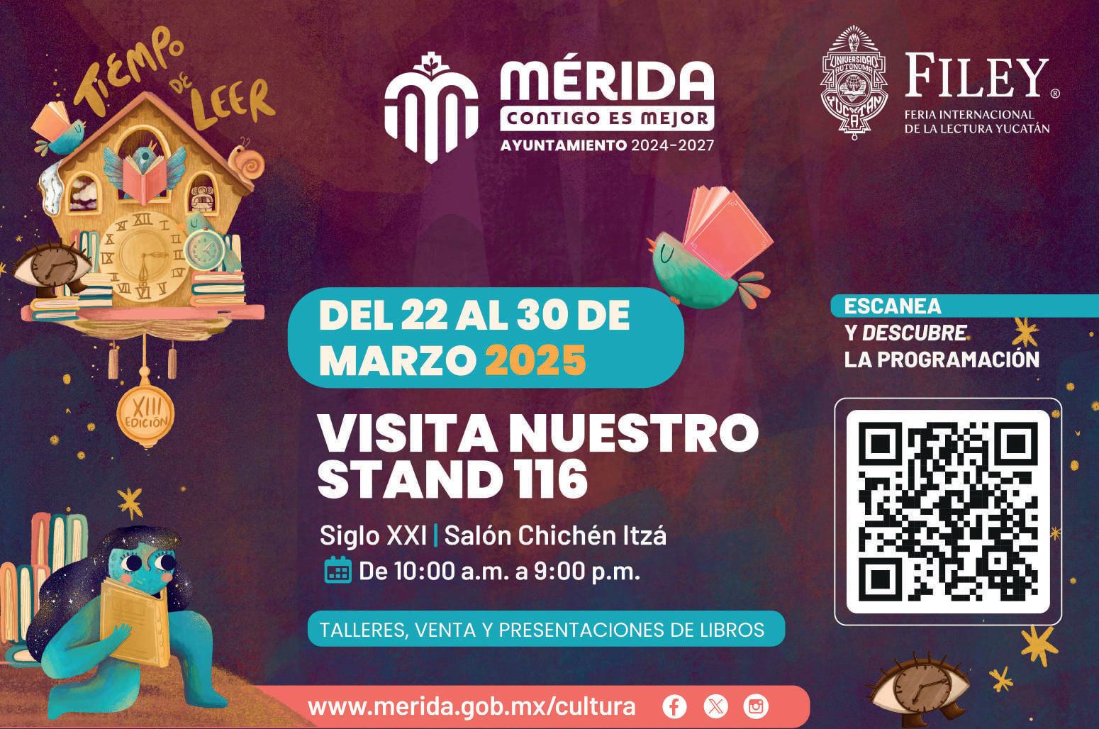 Impulsada con el esfuerzo y dedicación de la comunidad universitaria, la FILEY, la feria de la UADY, sigue consolidándose como un punto de encuentro donde convergen diversas expresiones culturales y artísticas, con un espíritu plural, incluyente y transformador. Y con el lema "Tiempo de leer", la FILEY 2025 nos invita a reflexionar sobre el tiempo en todas sus dimensiones: el tiempo de la memoria y la historia, el tiempo de la creación y la imaginación, el tiempo de la lectura como un espacio infinito de posibilidades.